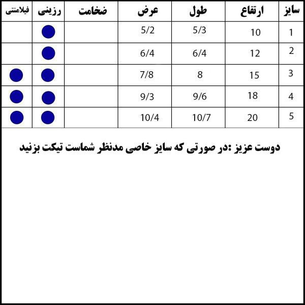 کاربر گرامی : در صورتی که سایز خاصی مدنظر شماست و همچنین برای ثبت سفارش پس قالب (حوضچه) برای بیس موجود تیکت بزنید یا در دایرکت اینستاگرام به ادمین اطلاع دهید.