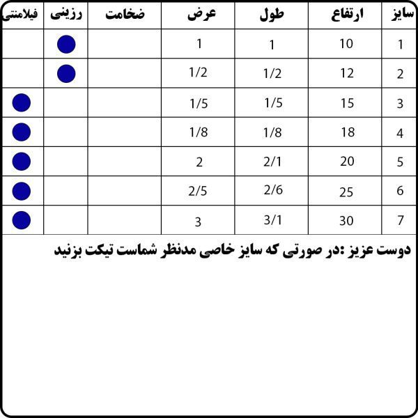 کاربر گرامی : در صورتی که سایز خاصی مدنظر شماست و همچنین برای ثبت سفارش پس قالب (حوضچه) برای بیس موجود تیکت بزنید یا در دایرکت اینستاگرام به ادمین اطلاع دهید.