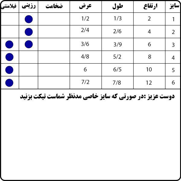 این محصول VIP بوده، سایز های 2 و 4 سانت این محصول همراه با پس قالب ساده و سایر سایزبندی همراه با پس قالب فرمی ارائه می شود.