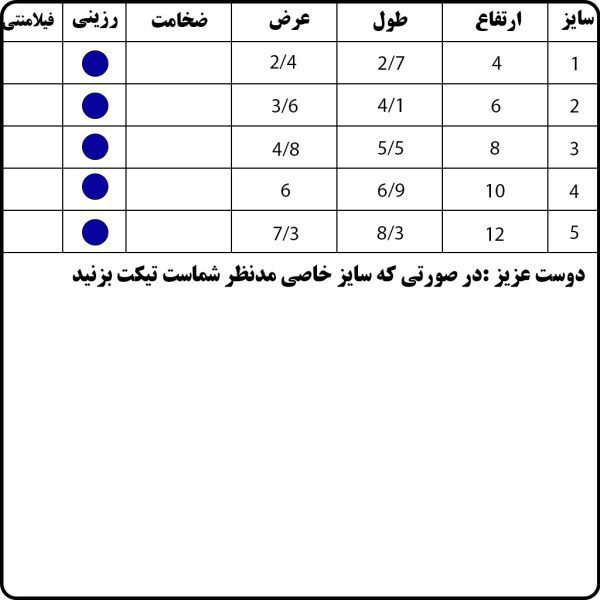 کاربر گرامی : در صورتی که سایز خاصی مدنظر شماست و همچنین برای ثبت سفارش پس قالب (حوضچه) برای بیس موجود تیکت بزنید یا در دایرکت اینستاگرام به ادمین اطلاع دهید.