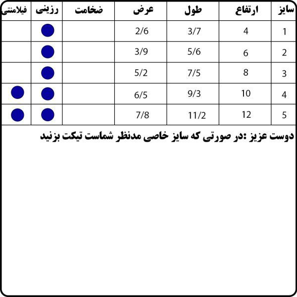 کاربر گرامی : در صورتی که سایز خاصی مدنظر شماست و همچنین برای ثبت سفارش پس قالب (حوضچه) برای بیس موجود تیکت بزنید یا در دایرکت اینستاگرام به ادمین اطلاع دهید.