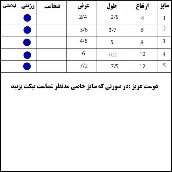 کاربر گرامی : در صورتی که سایز خاصی مدنظر شماست و همچنین برای ثبت سفارش پس قالب (حوضچه) برای بیس موجود تیکت بزنید یا در دایرکت اینستاگرام به ادمین اطلاع دهید.