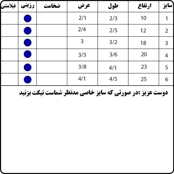 کاربر گرامی : در صورتی که سایز خاصی مدنظر شماست و همچنین برای ثبت سفارش پس قالب (حوضچه) برای بیس موجود تیکت بزنید یا در دایرکت اینستاگرام به ادمین اطلاع دهید.