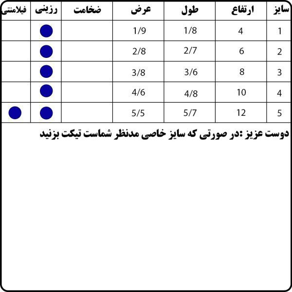 کاربر گرامی : در صورتی که سایز خاصی مدنظر شماست و همچنین برای ثبت سفارش پس قالب (حوضچه) برای بیس موجود تیکت بزنید یا در دایرکت اینستاگرام به ادمین اطلاع دهید.