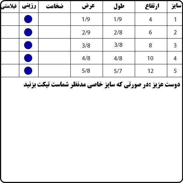 کاربر گرامی : در صورتی که سایز خاصی مدنظر شماست و همچنین برای ثبت سفارش پس قالب (حوضچه) برای بیس موجود تیکت بزنید یا در دایرکت اینستاگرام به ادمین اطلاع دهید.