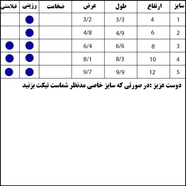 کاربر گرامی : در صورتی که سایز خاصی مدنظر شماست و همچنین برای ثبت سفارش پس قالب (حوضچه) برای بیس موجود تیکت بزنید یا در دایرکت اینستاگرام به ادمین اطلاع دهید.