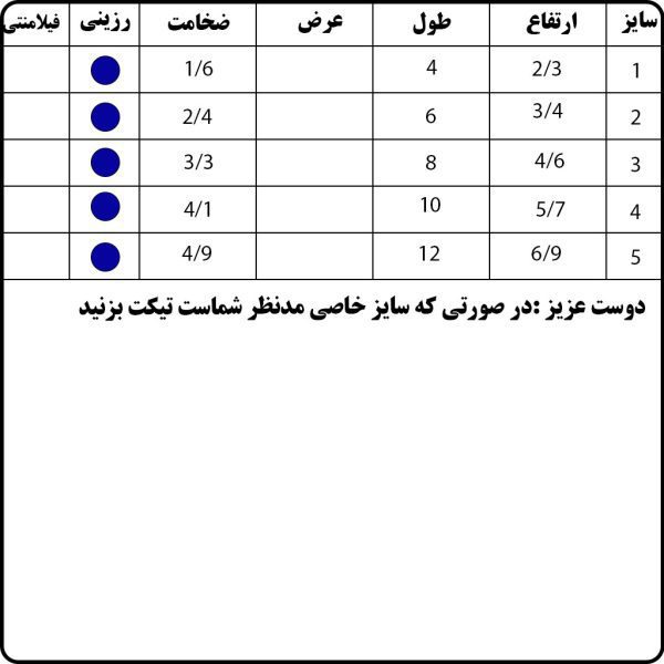 کاربر گرامی : در صورتی که سایز خاصی مدنظر شماست و همچنین برای ثبت سفارش پس قالب (حوضچه) برای بیس موجود تیکت بزنید یا در دایرکت اینستاگرام به ادمین اطلاع دهید.