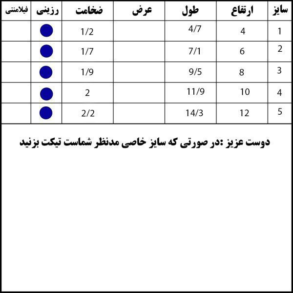 کاربر گرامی : در صورتی که سایز خاصی مدنظر شماست و همچنین برای ثبت سفارش پس قالب (حوضچه) برای بیس موجود تیکت بزنید یا در دایرکت اینستاگرام به ادمین اطلاع دهید.