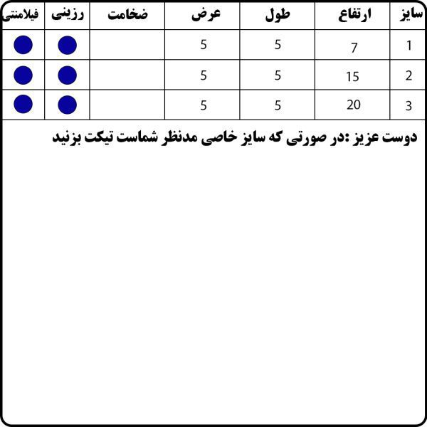 کاربر گرامی : در صورتی که سایز خاصی مدنظر شماست و همچنین برای ثبت سفارش پس قالب (حوضچه) برای بیس موجود تیکت بزنید یا در دایرکت اینستاگرام به ادمین اطلاع دهید.