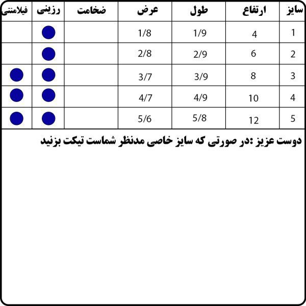 کاربر گرامی : در صورتی که سایز خاصی مدنظر شماست و همچنین برای ثبت سفارش پس قالب (حوضچه) برای بیس موجود تیکت بزنید یا در دایرکت اینستاگرام به ادمین اطلاع دهید.