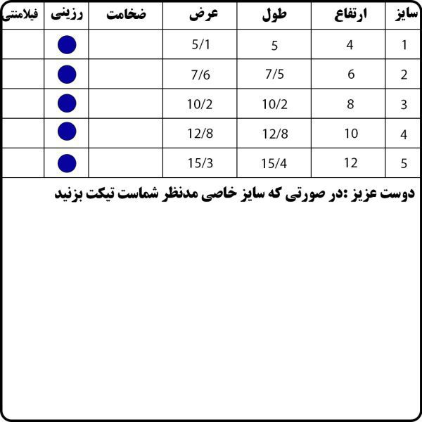 کاربر گرامی : در صورتی که سایز خاصی مدنظر شماست و همچنین برای ثبت سفارش پس قالب (حوضچه) برای بیس موجود تیکت بزنید یا در دایرکت اینستاگرام به ادمین اطلاع دهید.