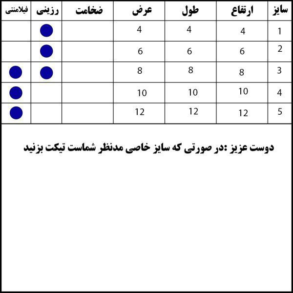 کاربر گرامی : در صورتی که سایز خاصی مدنظر شماست و همچنین برای ثبت سفارش پس قالب (حوضچه) برای بیس موجود تیکت بزنید یا در دایرکت اینستاگرام به ادمین اطلاع دهید.