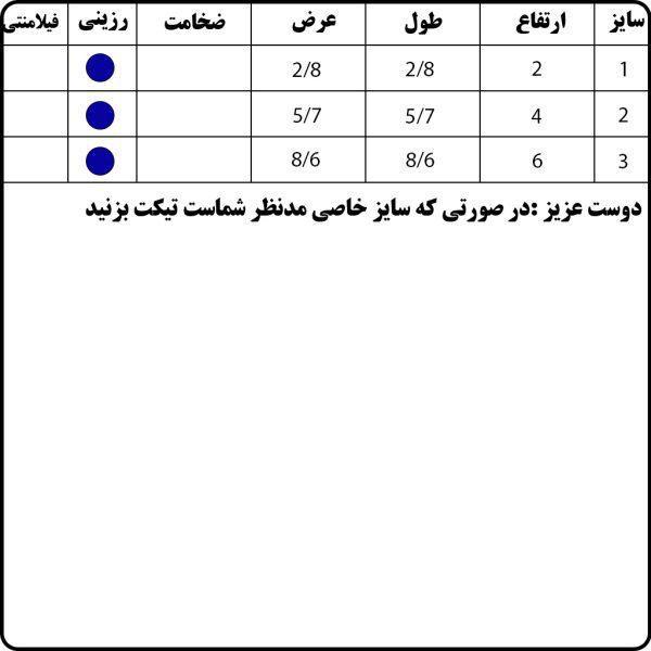 کاربر گرامی : در صورتی که سایز خاصی مدنظر شماست و همچنین برای ثبت سفارش پس قالب (حوضچه) برای بیس موجود تیکت بزنید یا در دایرکت اینستاگرام به ادمین اطلاع دهید.