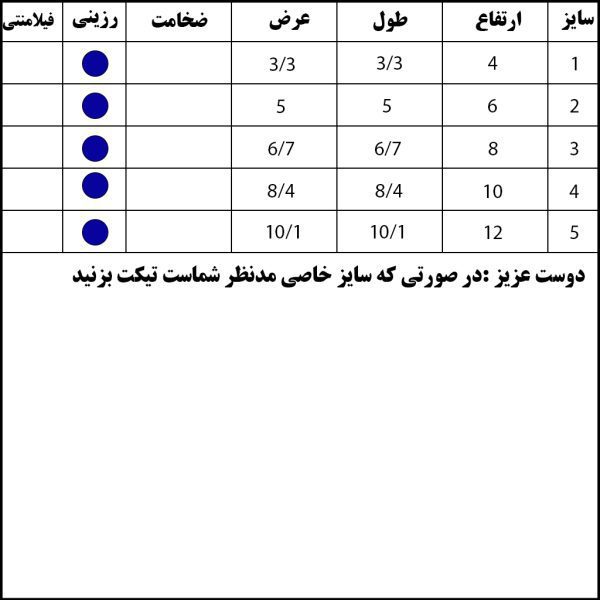 کاربر گرامی : در صورتی که سایز خاصی مدنظر شماست و همچنین برای ثبت سفارش پس قالب (حوضچه) برای بیس موجود تیکت بزنید یا در دایرکت اینستاگرام به ادمین اطلاع دهید.