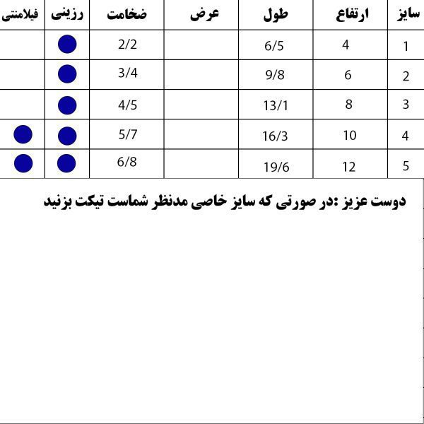 کاربر گرامی : در صورتی که سایز خاصی مدنظر شماست و همچنین برای ثبت سفارش پس قالب (حوضچه) برای بیس موجود تیکت بزنید یا در دایرکت اینستاگرام به ادمین اطلاع دهید.