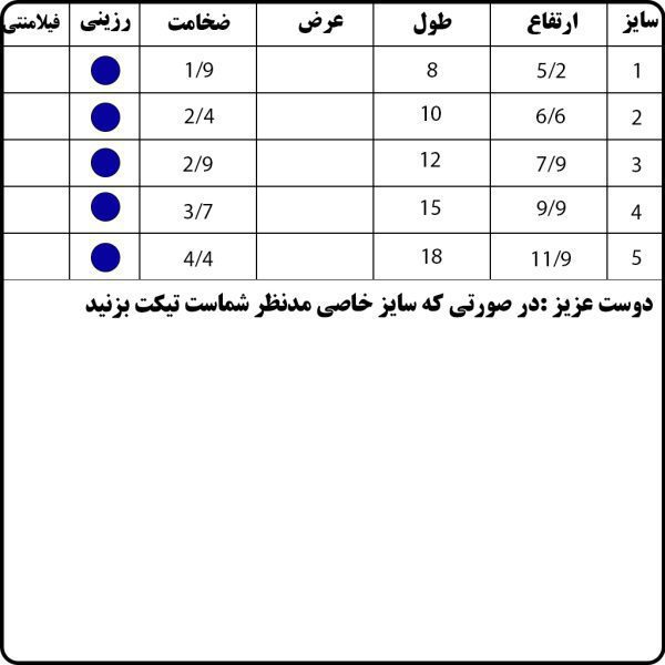 کاربر گرامی : در صورتی که سایز خاصی مدنظر شماست و همچنین برای ثبت سفارش پس قالب (حوضچه) برای بیس موجود تیکت بزنید یا در دایرکت اینستاگرام به ادمین اطلاع دهید.